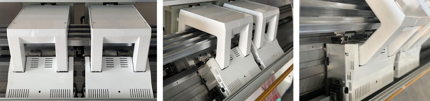 Fungsi mengait: Ia mempunyai pelbagai fungsi mengait seperti gegelung jarum pemindahan mengait, tuck, gegelung jarum penerima, lubang pilih, gegelung jarum berasingan, jacquard intarsia, dan sebagainya, yang boleh memastikan mesin sesuai dengan semua jenis corak.